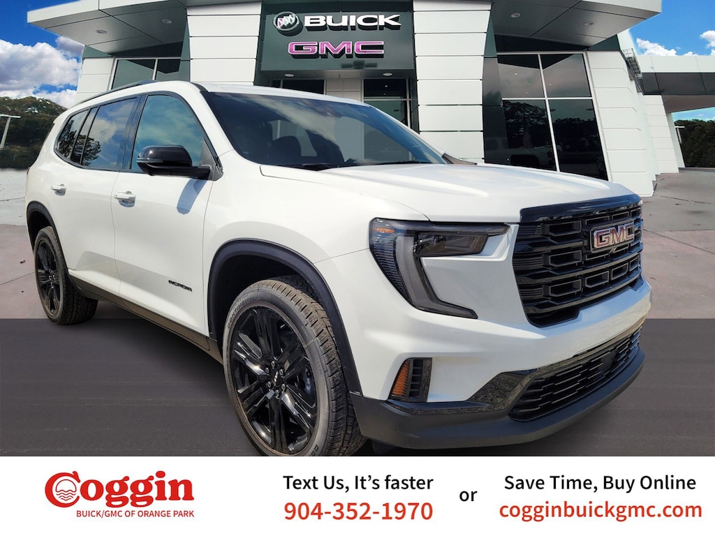 Summit White 2026 GMC Acadia Elevation FWD 8-Speed Automatic 2.5L DOHC FWD, After Dark Cloth.