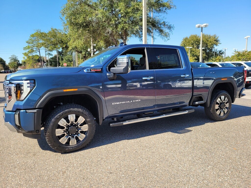 Downpour Metallic 2026 GMC Sierra 2500HD Denali 4WD 10-Speed Automatic Duramax 6.6L V8 Turbodiesel 10-Speed Automatic, 4WD, Atmosphere/Brownstone Leather.